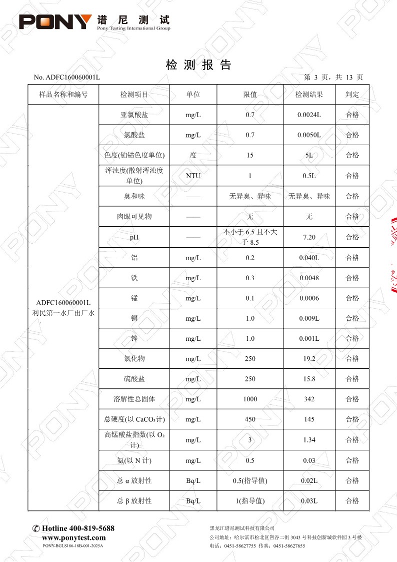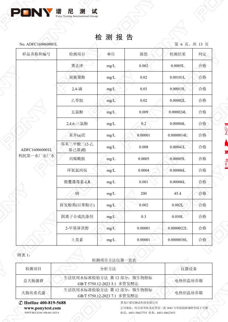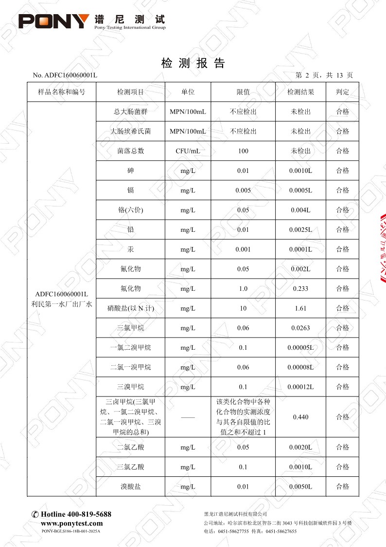 水质检测报告(利民开发区第二水厂)(报告日期2026年01月12日)
