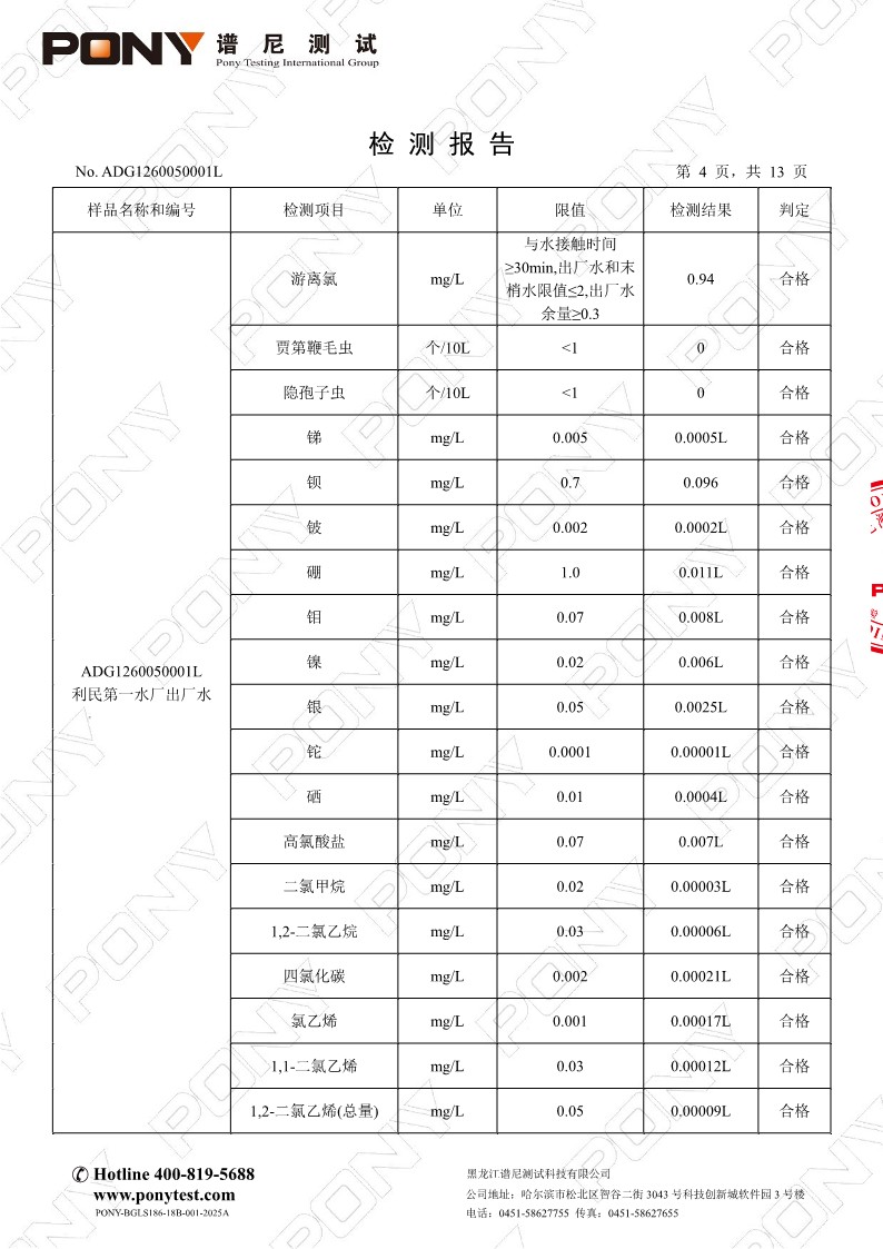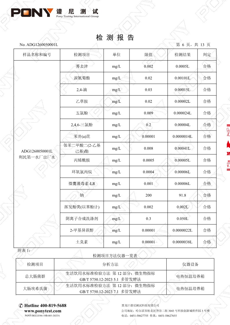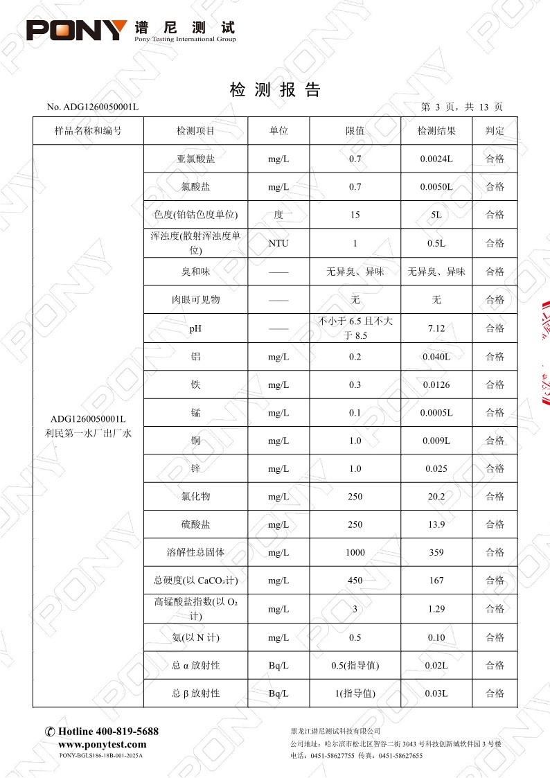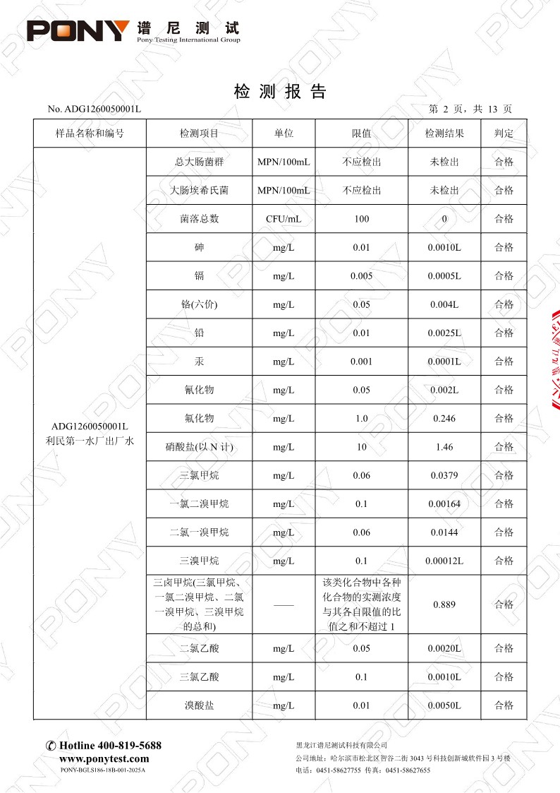 水质检测报告(利民开发区第一水厂)(报告日期2026年02月28日)